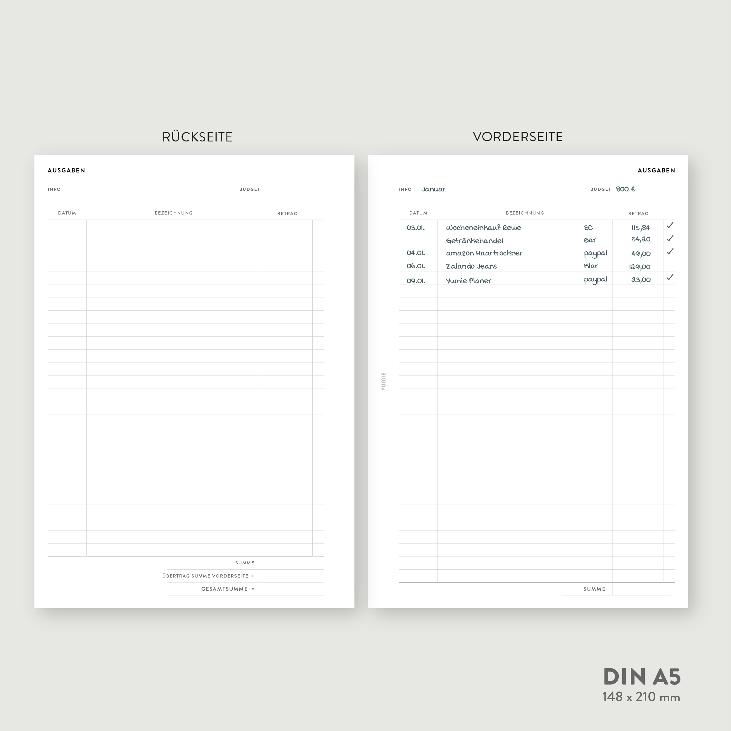 - Tracking Liste für deine Geldausgaben