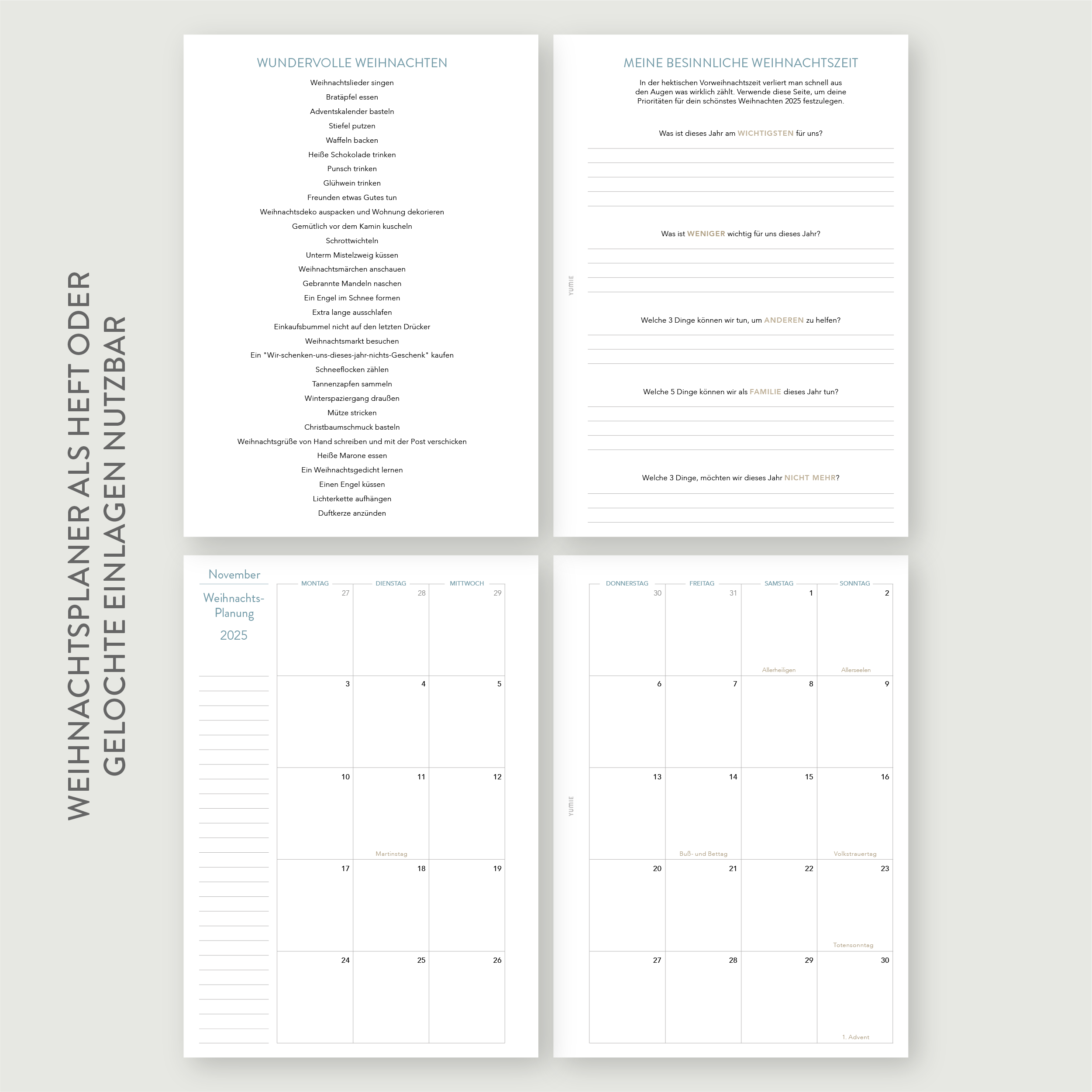- 2 Doppelseiten Monatsübersicht November und Dezember 2025